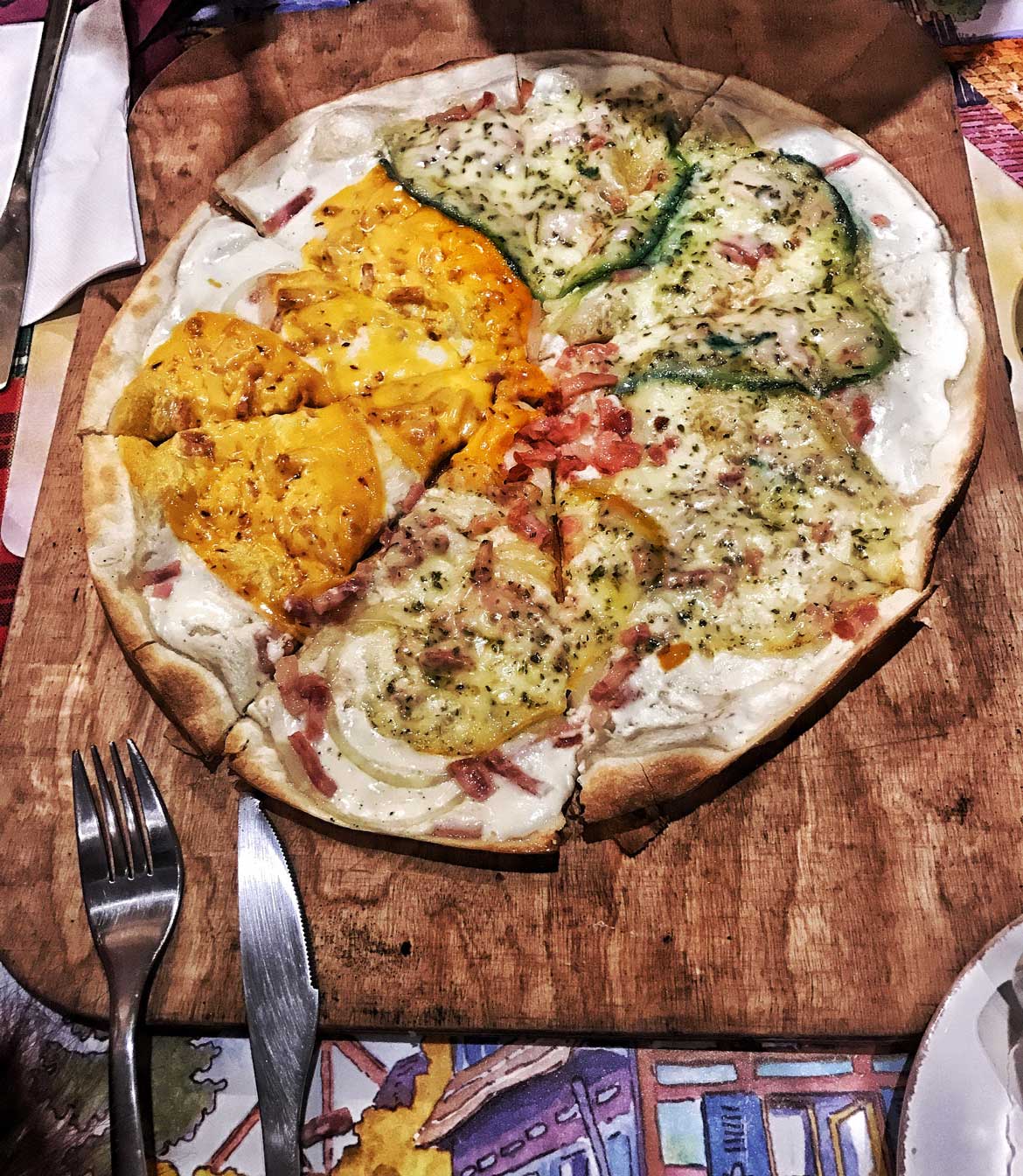 Kao veliki ljubitelj pica, nisam odolela da ne probam i alzašku verziju specifičnog naziva-flamenkuhen. Tansko hrskavo testo prekriveno raznim začinima, sirevima ili grilovanim povrćem me možda nije ostavilo sitom, ali me je definitivno oduševilo ukusom.