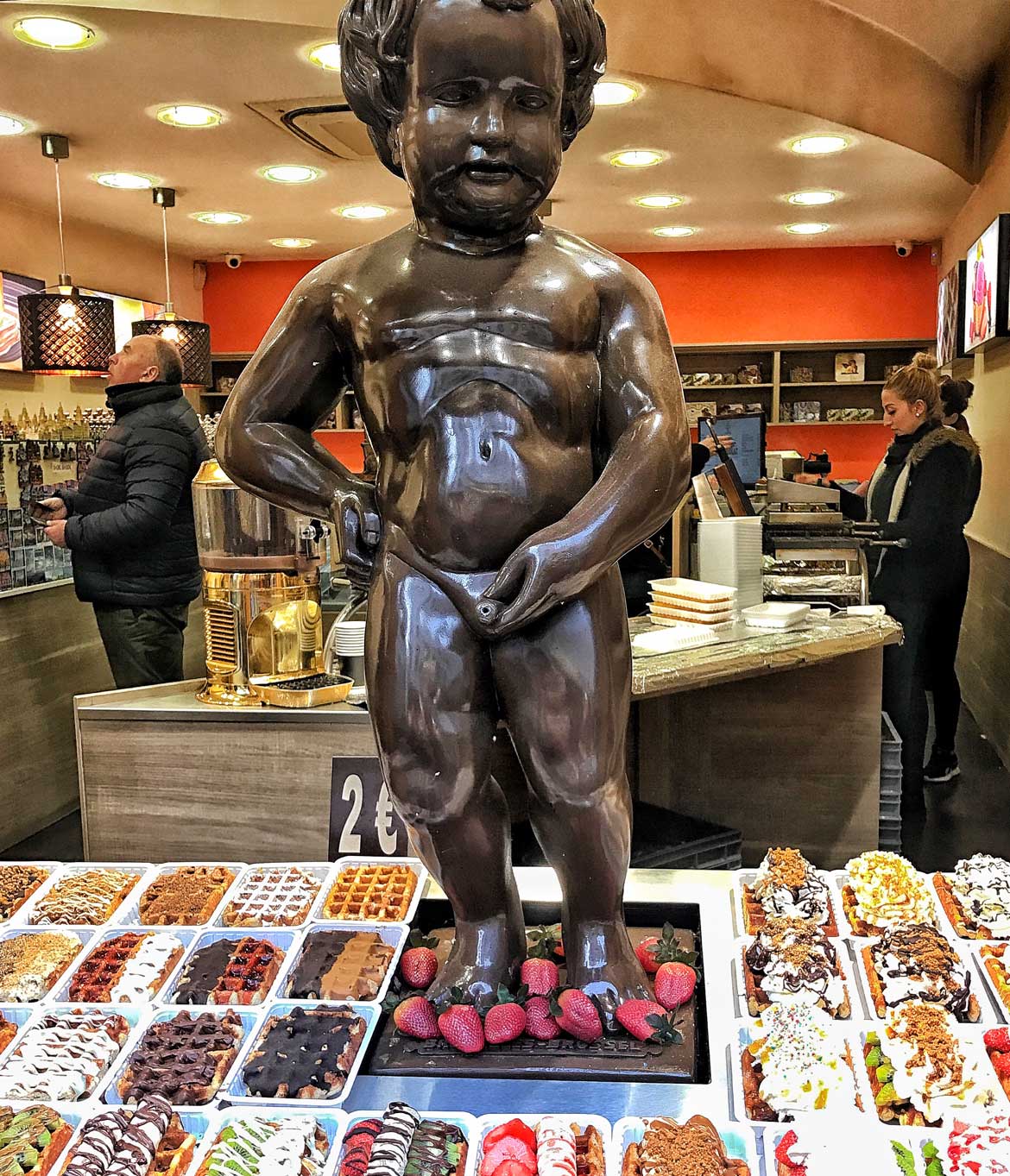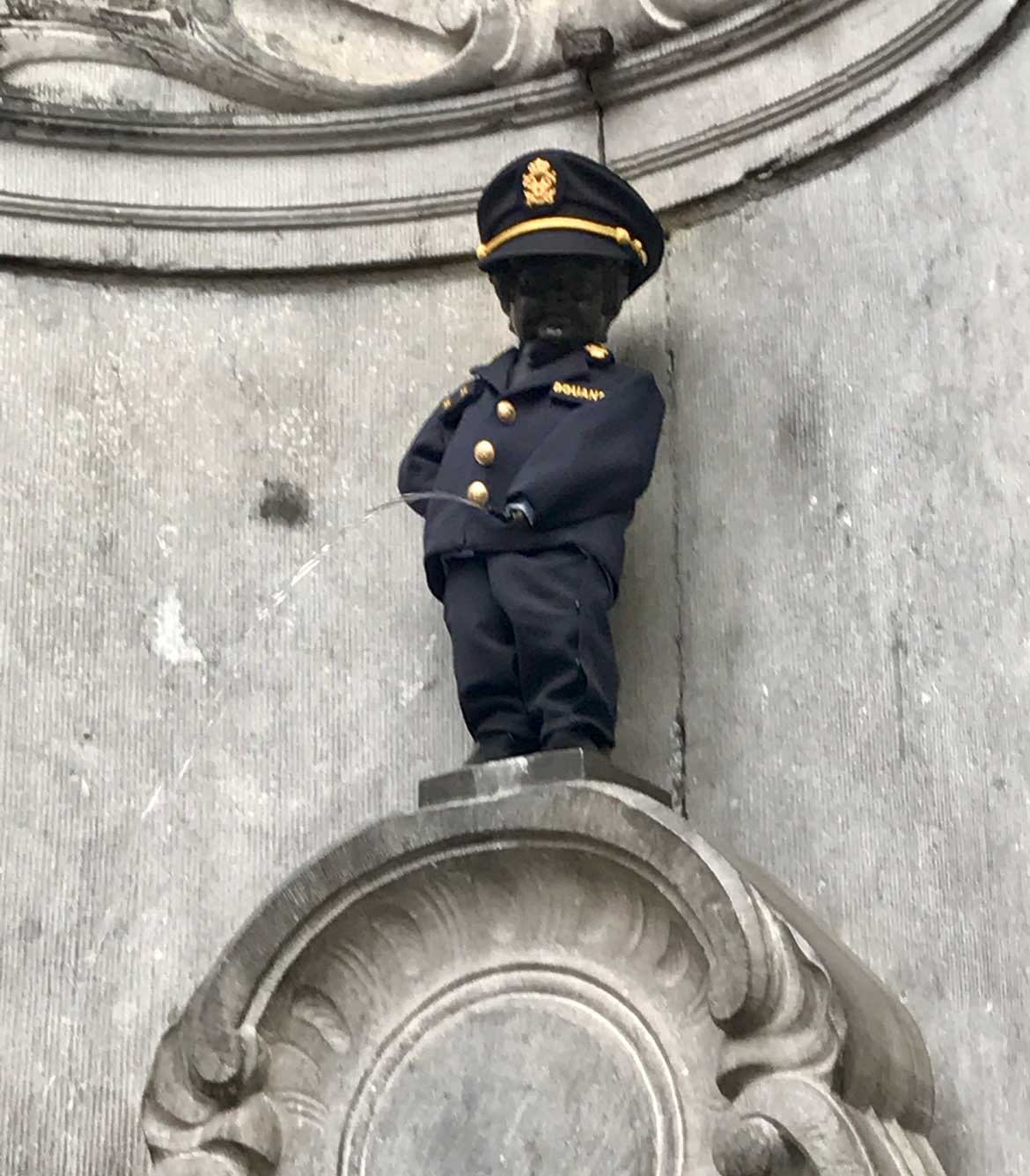 Na par minuta hoda od glavnog trga, skriven u sporednoj ulici dočekuje nas Maneken Pis, mali bronzani dečak koji piški u fontanu i glavni simbol grada. On nasmejava prolaznike od 1619. godine. Veruje se da je tada upravo na ovaj način spasao grad od požara. Još simpatičnijim ga čine njegova odela, koje menja svake nedelje u skladu sa bitnim datumom ili događajem. Ovog puta je bio obučen kao carinik (tog dana se obeležavao svetski dan carine).
