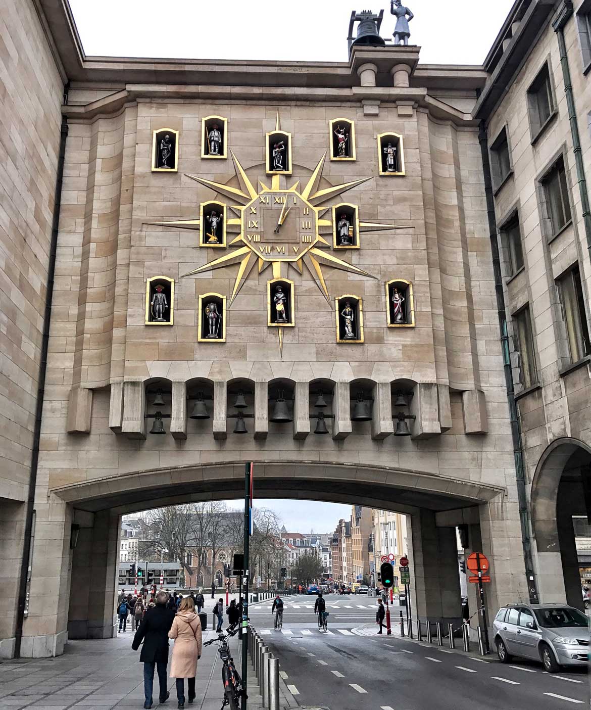 Odmah do parka, zaintrigirao me je džinovski sat u obliku Sunca sa zlatnim kazaljkama i figurama belgijskih heroja koje obeležavaju pune časove. Star tek šezdesetak godina, a izgleda kao da je mnogo više vremena otkucao.