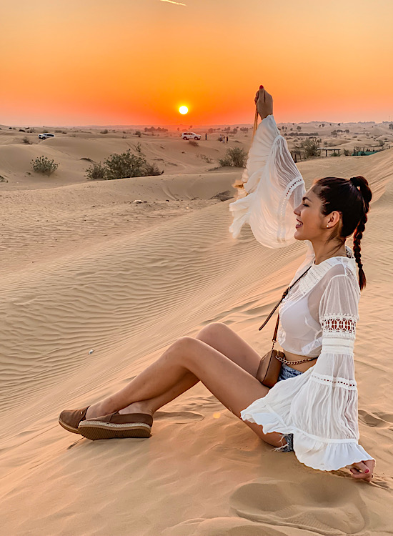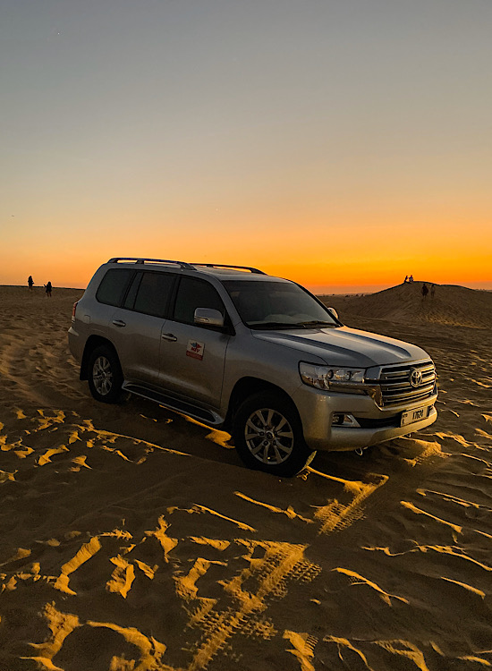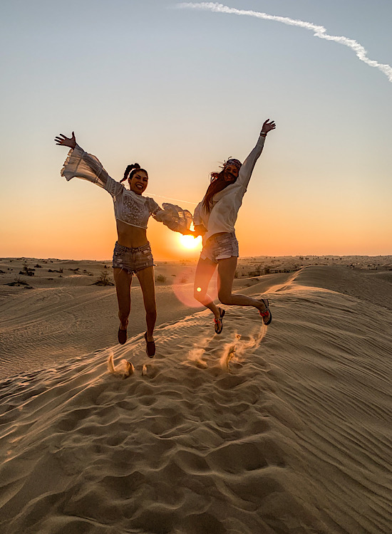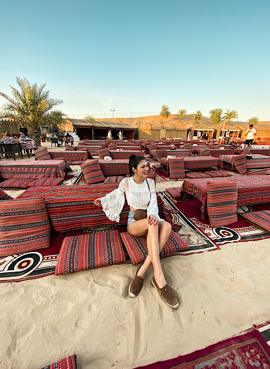 Izlet u pustinju mi se toliko dopao, da sam čak dva puta na njega išla. Cena ovih izleta može ići i do 100 evra, ali sam otkrila sajt groupon.rs (funkiconiše slično kao naši sajtovi sa popustima i mogu se nači baš dobre ponude za razne usluge i atrakcije), gde sam sa agencijom Luxury tours u pustinji uživala za manje od 20. U cenu je uključen prevoz iz Dubaija (postoje određene lokacije gde vas kupe, a moguće je da dođu po vas do smeštaja uz doplatu), vožnja džipovima po dinama, jahanje kamila, čaj i urme dobrodošlice, crtanje henom, večera na bazi švedskog stola i zabavni program.