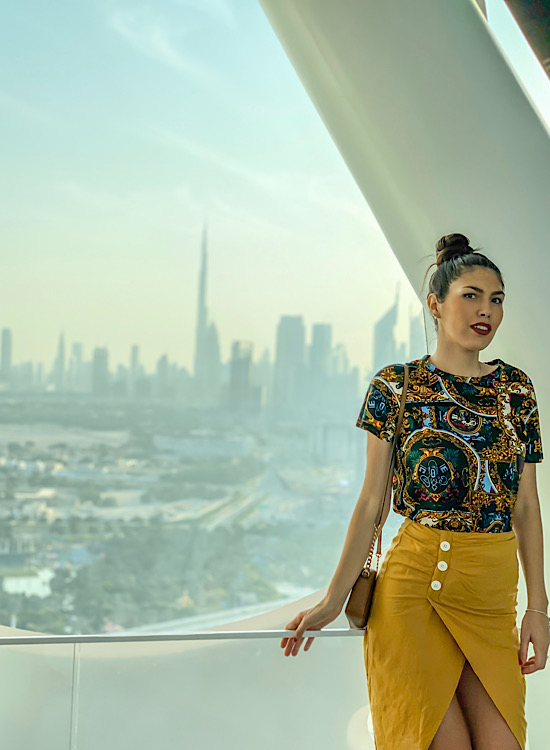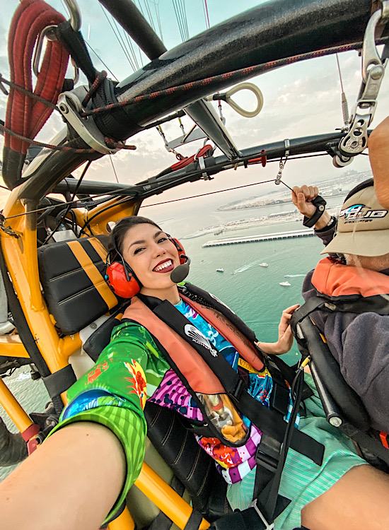 Xcitor-om smo moj pilot Igor iz Rusije i ja leteli brzinom od 70 km/h na 1000 m malo manje od pola sata. Xcitor je sličan girokopteru, ali je skroz otvoren i pravi manje buke. Krenuli smo iz marine, i osim nje videli smo deo ,,Jumeirah”, Palmu veštačko ostrvo, Burdž al Arab hotel... Praktično ceo grad, pošto je nebo bilo čisto. Zamišljala sam da će biti mnogo strašnije, ali je pogled toliko lep da sam zaboravila na strah od visine. Let je potrebno rezervisati par dana ranije, kompanija koja ga obavlja je Skydive Dubai (glavna delatnost su im skokovi padobranom) i na ovom linku možete naći više informacija.