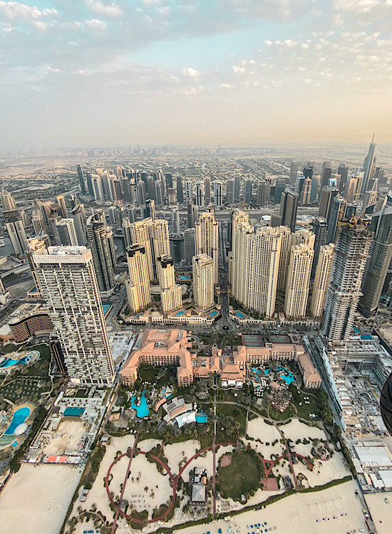 Sa staklenog mosta koji povezuje dve kule se vide i stari i novi deo Dubaija.