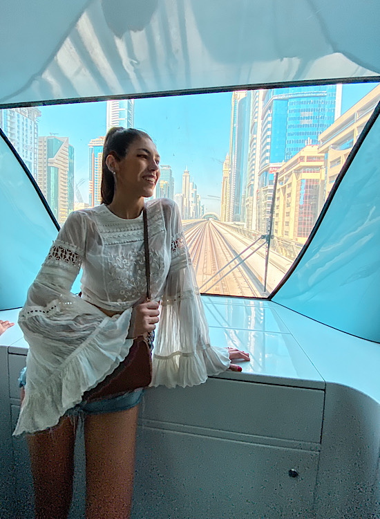 Od DXB do centra možete ići metroom, a od DWC morate sačekati autobus (7.5 AED-2 evra), koji do metro stanice Ibn Battuta stiže za nekih 45 minuta, pa odatle opet možete metroom do centra. Za korišćenje metroa morate imati NOL karticu koja košta 25 AED (oko 6 evra) i na njoj dobijete 19 AED kredita. Možete je koristiti i da platite i druge vrste javnog prevoza i taksije. Cena metroa zavisi od broja stanica (od 1-3 evra) i odvojeni su vagoni za žene i muškarce. Žene smeju da budu u delu za muškarce, ali ako se muškarac nađe u delu za žene sledi mu novčana kazna, pa dobro obratite pažnju na znakove.