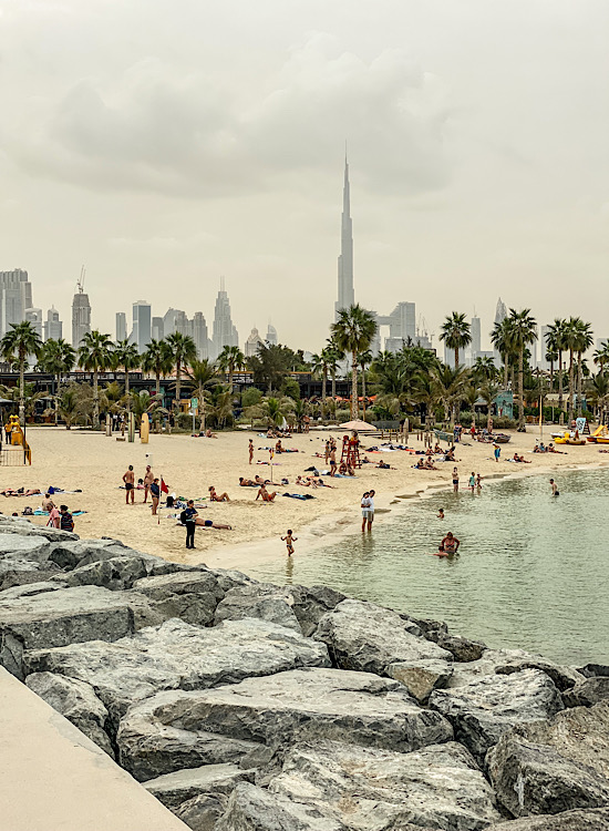 Pogled ka vodi kvare gradilišta jer je sve okolo u procesu gradnje. Na plaži je baš gužva, tako da bih La Mer pre preporučila za šetnju nego kupanje. Dođite malo pre zalaska sunca, da biste La Mer videli i po danu, ali i uveče, kada se upale sve sijalice i lampioni.