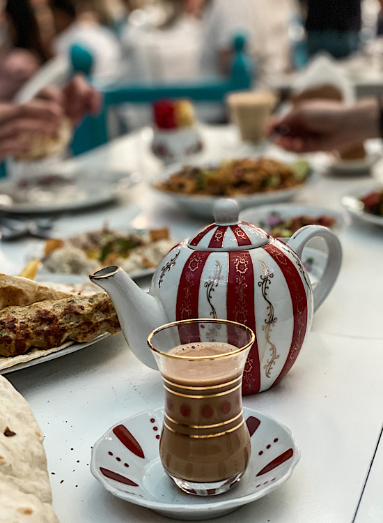Ovde se nalazi i jedan od najpoznatijih tradicionalnih restorana, Arabian Tea House, u kome je uvek gužva, pa se spremite na čekanje i od pola sata. Kada konačno sednete, oduševićete se brzinom usluge, enterijerom i ukusom hrane. Preporučujem da probate više različitiih manjih jela i obavezno dezerte od urmi i kamiljeg mleka.
