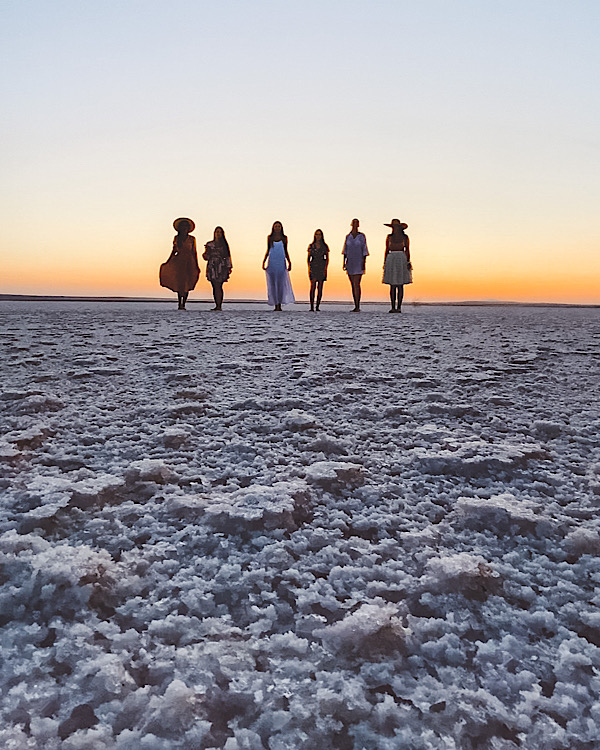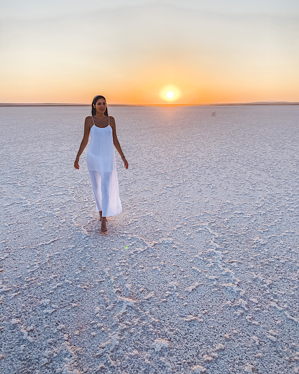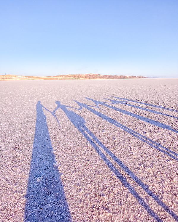 U letnjim mesecima je posebno plitko, tj vode maltene i da nema, pa smo po njemu pešačili dobrih 3-4 km. Razlog zašto smo toliko dugo provele u ovoj ,,slanini” je što smo želele da vidimo i deo gde je jezero roze. Da, dobro ste pročitali, postoji deo jezera gde je voda roze boje. Razlog su alge, kao i kod većine ,,obojenih” voda. Čak i na ovoj fotografiji se naziru rozikasti odsjaji soli, ali nažalost nismo uspele da stignemo do mesta gde počinje voda. Neki od lokalaca su nam rekli da je jezero roze samo u junu i julu, drugi da tamo gde je roze voda nije ni dozvoljeno prići jer tu žive flamingosi (ovo je i mesto sa najvećim brojem flamingosa na jednom mestu na celom svetu), trećima nije bilo jasno šta tačno pitamo. Uglavnom, zaključile smo da smo najverovatnije prišle jezeru sa pogrešne strane jer je ogromno i moguće je da je sa obale preko puta roze voda mnogo bliža.