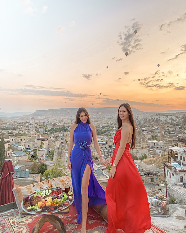 Mi smo imale puno sreće i sredinom septembra su nam baloni leteli svih 5 dana. U normalno vreme, cena leta balonom u trajanju od sat vremena se kreće od 200 evra. Za vreme korone, sve preko 100 evra se smatralo skupim. Najjeftinija cena za let balonom koju sam videla je bila 55 evra. Mi smo letele kompanijom Turca balloons i let nas je koštao 80 evra po osobi. Nije mi se dopalo što je u korpi balona moglo da stane i do 30 ljudi i naravno da je bio pun. Korpe su podeljene tako da se u svakom odeljku nalazi po 3 osobe, a meni i mojoj drugarici je zapao jedan malo puniji Rus, pa smo jedva mogle da se pomeramo. To je doprinelo tome da fotografije sa nama na njima nisu sjajne, ali nije umanjilo doživljaj.