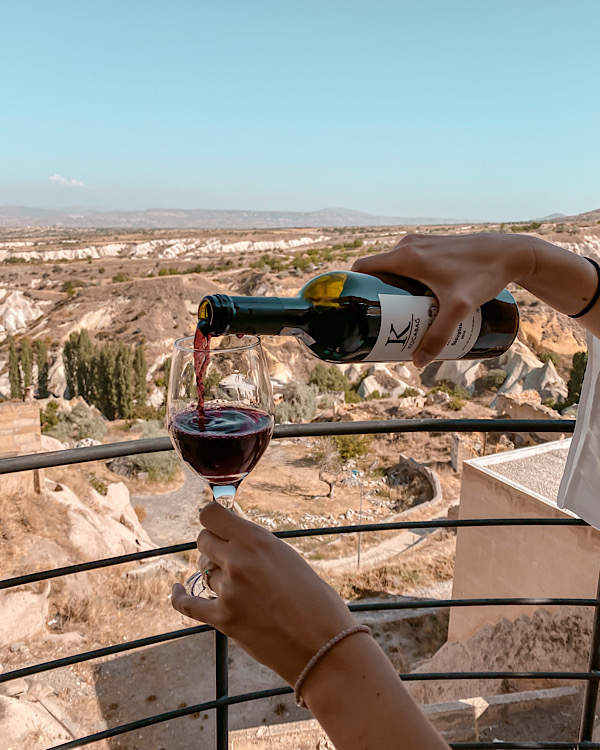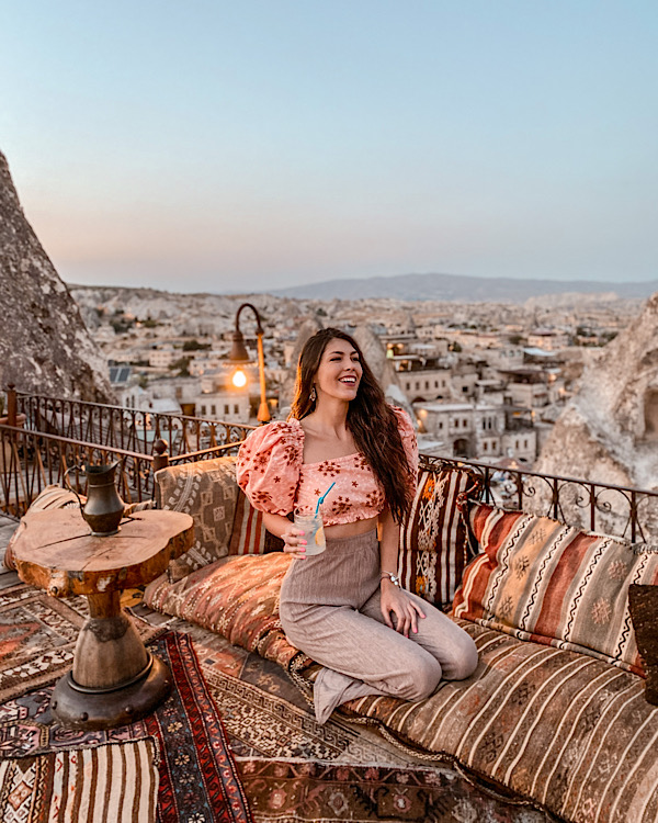 Za Koza Cave Hotel kažu da ima najlepši i najviši bar u celoj Kapadokiji, pa smo tu svratile na koktele uz zalazak sunca. Iznenadile su me cene, koje su jače (koktele smo plaćale od 7-10 evra) nego u ostalim restoranima, ali i to što se ne služi nikakva hrana.