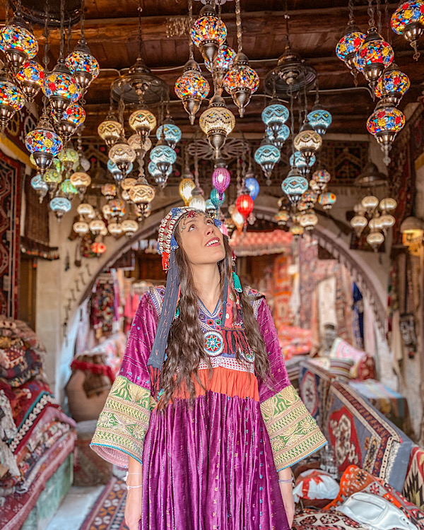 Kada sam ranije vidjala fotografije odavde mislila sam da su haljine koje je moguće bez doplate obući deo tradicionalne turske nošnje, a zapravo se radi o odeći za venčanje koja se nosi u delovima Afganistana i Turkmenistana. Nema posebnog značenja zašto su se haljine našle i ovde, glavni razlog je to što se dobro uklapaju u okolinu.