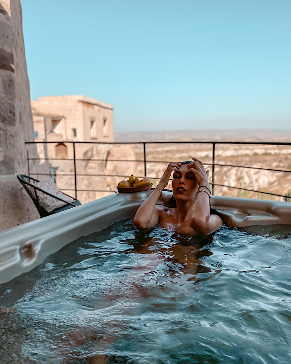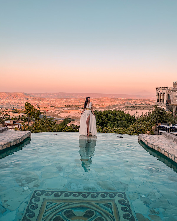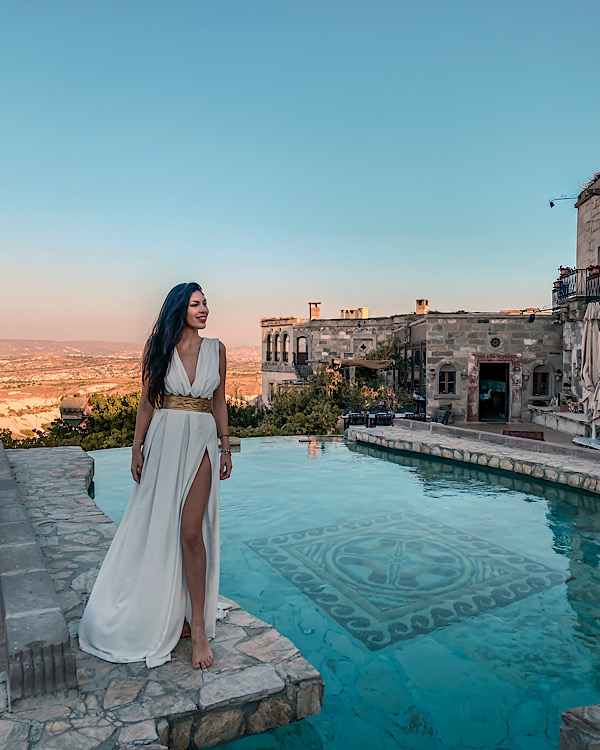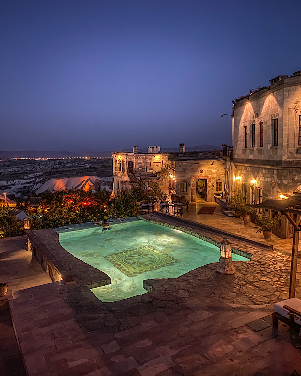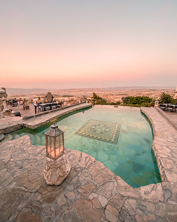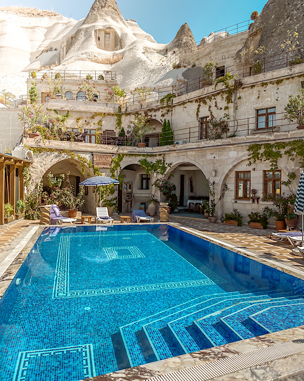 Ovaj hotel se nalazi u gradu Goreme je ogromnu popularnost dobio zbog svog bazena. Ulaz je otvoren i košta 50 lira. Iako je toliko fotogeničan i često viđan na društvenim mrežama, u vreme naše posete nikoga drugog nije bilo, pa čak ni hotelskih gostiju.
