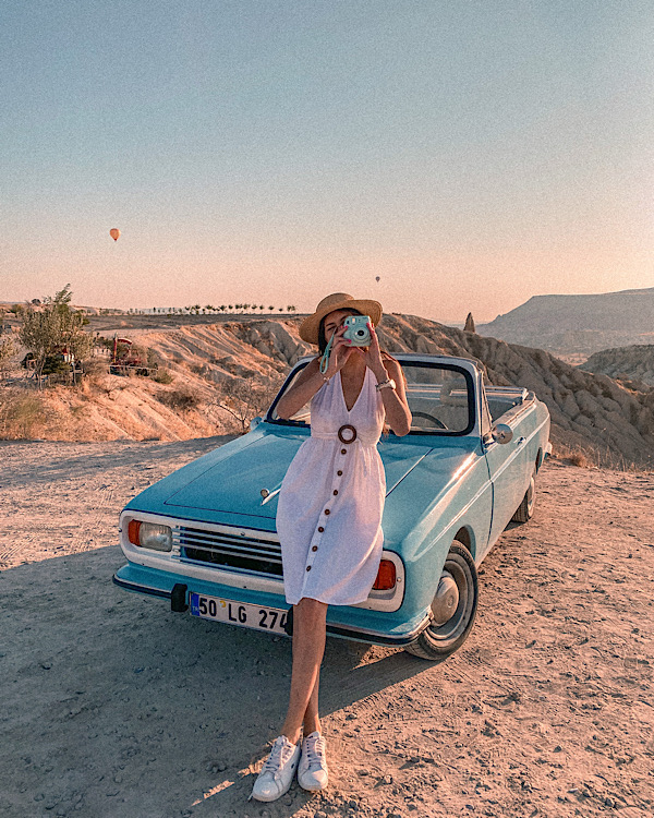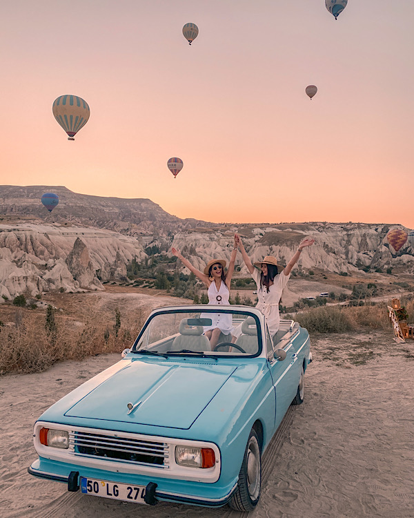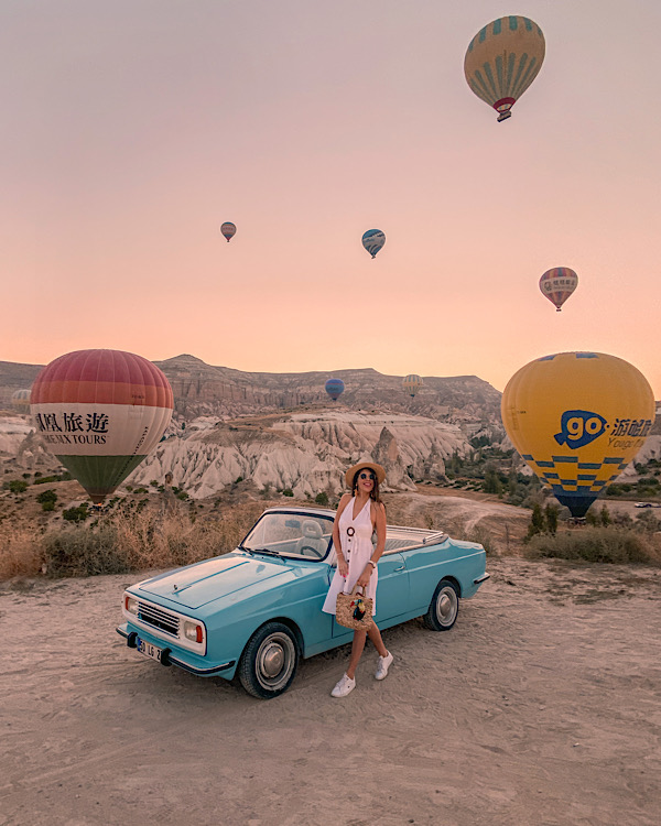 Kako smo prvi dan po povratku sa leta prespavale, sledeća aktivnost nam je bila tek narednog dana, opet praćena buđenjem u 4 ujutru. Ako kao i ja obožavate oldtajmere, onda je Kapadokija jedno od najlepših mesta na svetu gde možete da se vozite u njima. Cena iznajmljivanja auta po izboru (verujte da vam neće biti lako, rozi, crveni, beli...) je 450 lira i u auto pored vozača mogu da stanu još 4 osobe. Tura traje oko 2 sata i u dogovoru sa vozačem možete izabrati koje lokacije želite da posetite. Mi smo birale tamo gde se najbolje vidi poletanje balona, a potom ,,Love valley”.