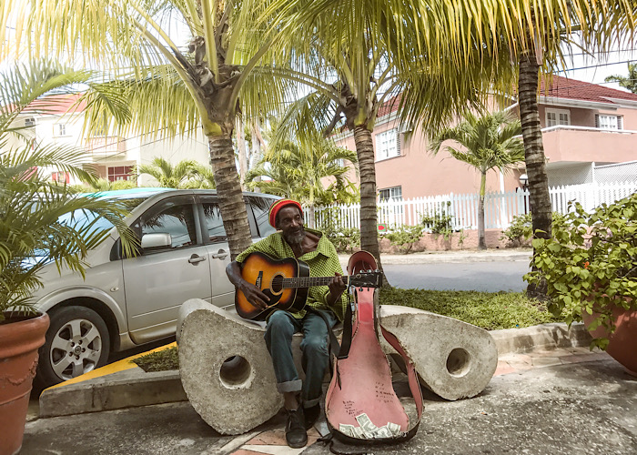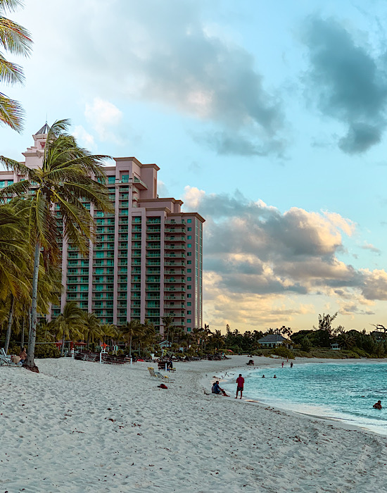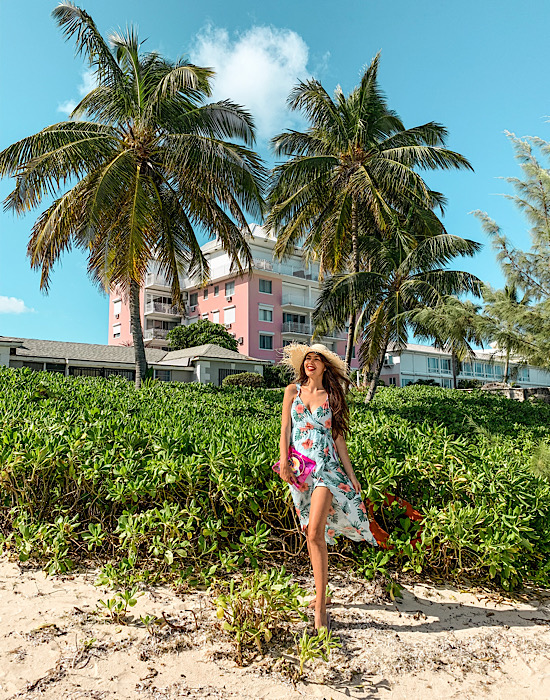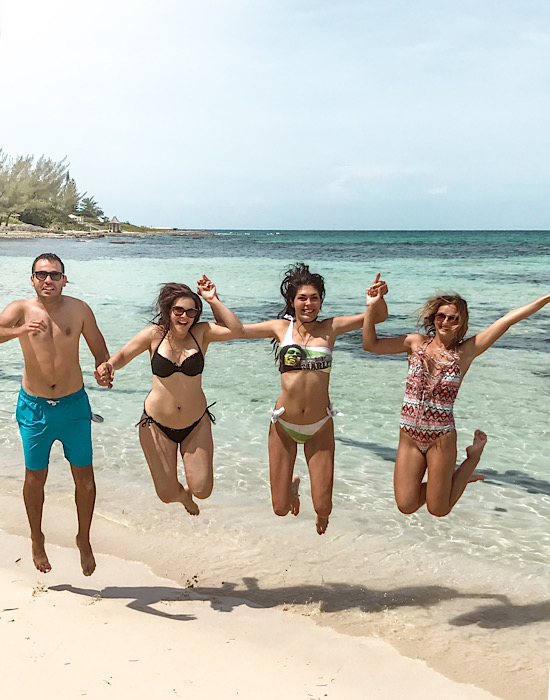 Dočekalo nas je vreme za poželeti, sa par oblačaka tek toliko da povremeno ublaže jake sunčeve zrake. Vazduh je topao, kada vetar zaduva kao da miluje kožu. Bahami su inače skup od oko 700 ostrva (30 je naseljeno) i iako boja vode liči na Karpisko more, zapravo se nalaze u Atlantskom okeanu. Karipsko more mi je uvek pretoplo, nikada me ne osveži, dok je temperatura okeana takva da nema onog početnog šoka prilikom ulaska, a opet dovoljno hladna da spase od tropske vrućine. Kada smo stigle, pitale smo lokalce gde je neka lepa plaža, na šta su nam odgovorili da ovde nema ružne. Lokalnim autobusom za manje od dolar smo došli do one pored luksuznog Sandals hotela.