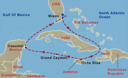 Najveće luke za karipska krstarenja su u Majamiju, Orlandu, Fort Lauderdale-u i San Huanu (Portoriko) i odatle kreće najveći broj brodova.