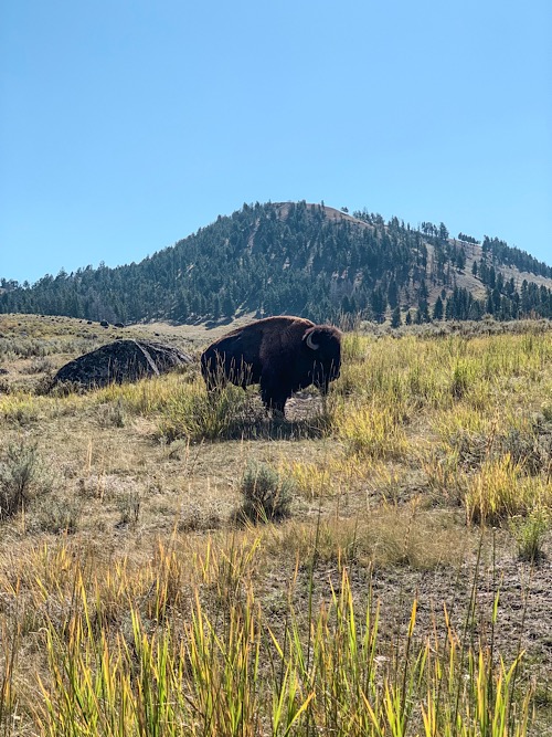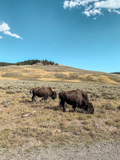 Na putu i sa obe strane puta je bilo krdo bizona. Nismo smeli da se previše približavamo jer iako deluju mirno, bizoni mogu biti vrlo opasni ako se osete ugroženo. Posle smo i prestali da stajemo jer su bizoni toliko brojni da su i prestali da budu zanimljivi.