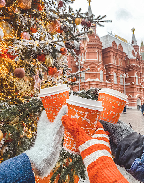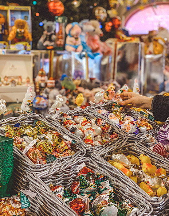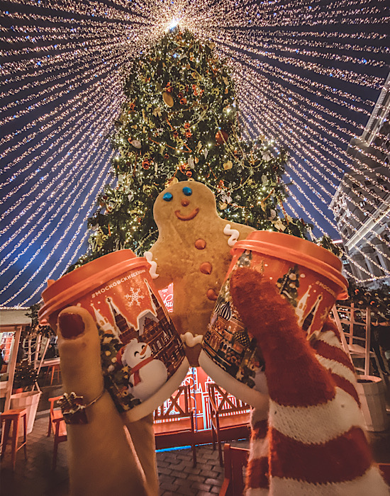 Čim smo izašli iz metroa zabljesnula su nas svetla božićnog marketa na Manježnom trgu, koji se nalazi pored Crvenog. Tema božićnih marketa za sezonu 2019/2020 je bila Putovanje do Božića, pa su se ovde mogli naći štandovi iz Beča, Kopenhagena, Praga i probati hrana iz raznih delova sveta.