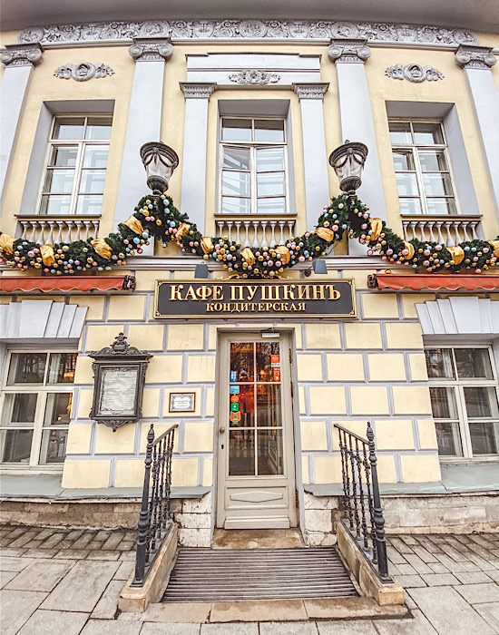 Restoran na Tverskom bulevaru, preko puta već pomenutog svetlećeg tunela, koji je koliko lep unutra, lep i spolja. Spada medju skuplje restorane u Moskvi, pa ako ne želite da izdvojite pedesetak evra za ručak, možete otići u susedni Puškin kafe i počastiti se nekim od njihovih čuvenih kolača, a opet uživati u otmenom ambijentu.