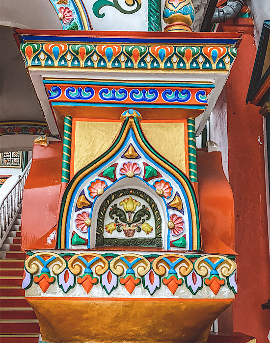 Hram se nalazi na obali reke Moskve, pa obavezno prošetajte oko njega i uživajte u panoramskom pogledu sa mostova. Sada je onaj koji vodi pravo na hram ukrašen ovim crvenim svodovima, pa nam je to bilo zanimljivije za fotkanje, a i već se spustio mrak kada smo stigli.