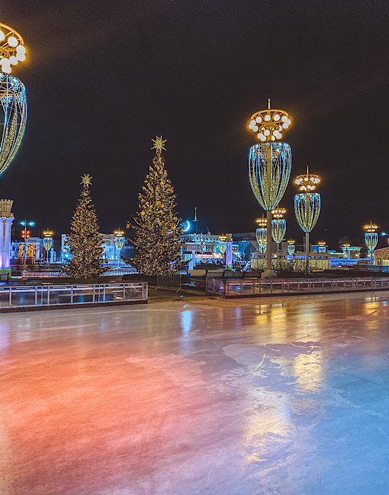 Jedan od najlepših parkova u Moskvi tokom zime je VDNH, koji se u ovom periodu pretvara u ogromno klizalište gde možete provesti ceo dan.