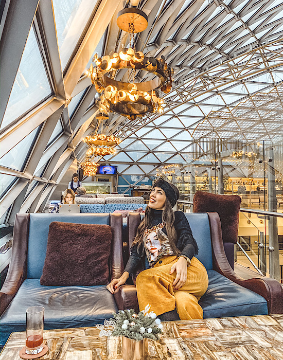 Ne morate biti gost hotela da biste ga posetili, a nije potrebna ni rezervacija. Cene su u skladu sa pogledom, pa za kafu spremite da izdvojite oko 500 RBL (7 evra). Najjeftiniji obrok je oko 1400 RBL (20 evra).