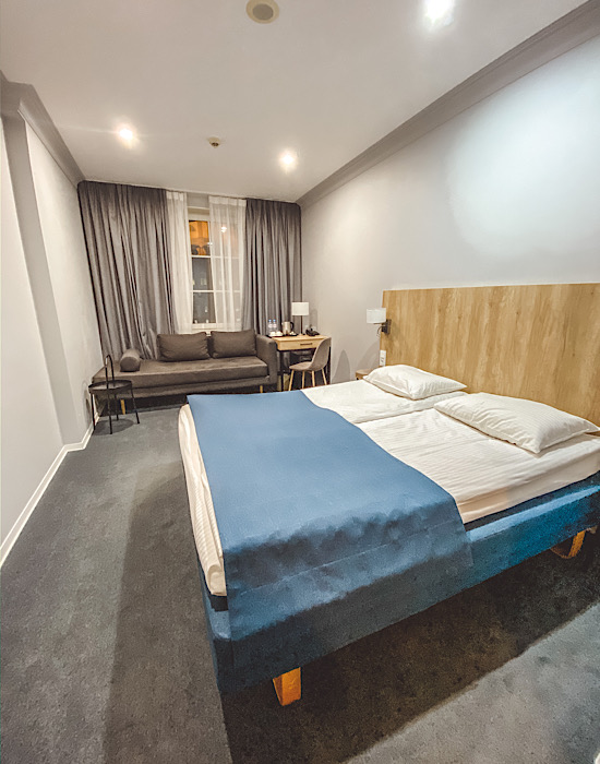 Soba nam je bila na 7. spratu, odakle se pružao pogled na reku. U prizemlju hotela se nalazi bar, restoran, ali i deo sa saunom, đakuzijem i teretanom (korišćenje je uključeno u cenu noćenja koja zavisi od datuma i po osobi se kreće od 25-30 evra).