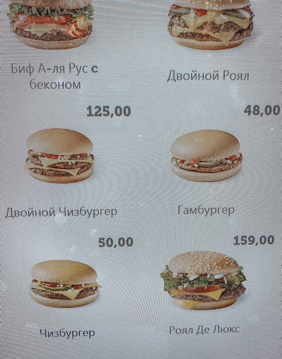 Ako volite Mek i slične restorane brze hrane, svideće vam se što je ovde baš jeftin (jedno 20-30% jeftiniji nego kod nas). Sećam se da kada sam prvi put došla u Moskvu, uglavnom sam tu jela jer je u srednjoj školi to bio pojam, a ovde sam imala dovoljno novca za sve što poželim. I dan danas se uvek setim Moskve kada prodjem pored nekog Meka. Takođe, kada god pročitam hamburger, setim se da ga Rusi zovu Gamburger (reči koje u našem jeziku imaju slovo H, oni pišu sa G, pa je Hari Poter u Rusiji Gari).