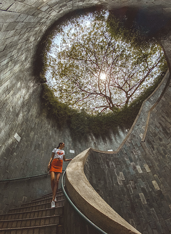 Ako ste i vi, kao što sam ja bila, oduševljeni scenografijom, znajte da uživo ovo mesto liči ni na šta više nego na neki podzemni prolaz gde spavaju beskućnici. Pošto je u Singapuru sve prečisto, ne osećate mirise koji bi to potkrepili, ali je doživljaj takav. Ja sam kroz fotografije koje sam viđala na Instagramu bila u ubedjena da je u pitanju neko podzemno jezero ili slično. Ako imate viška vremena, onda idite do Fort Canning parka i tražite rupu gde se svi slikaju. Radnici će znati na šta mislite, ali kada konačno stignete mislićete da ste pogrešili. Onda ćete videti ljude na podu koji pokušavaju da uhvate celu rupu i shvatićete da ste stigli. Spremite neki aparat koji ima širok ugao, jer drugačije ne možete dobiti sličnu fotografiju.