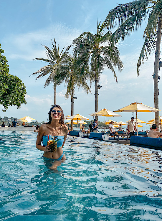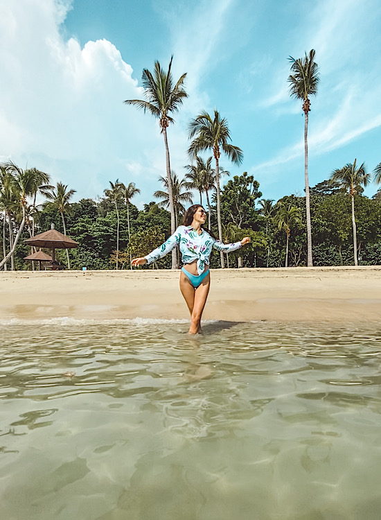 Cene hrane i pića nisu više nego u samom Singapuru, ali da biste uživali u nekom od njihovih kreveta i kauča na plaži, morate potrošiti mnogo novca (do 14:30 je uslov 100 SGD, a posle čak 500 SGD). Ja sam se stacionirala ispod palme odmah pored kluba, a pošto sam tu ručala, mogla sam da koristim bazen koji je dobar da se rashladite jer je more pretoplo.